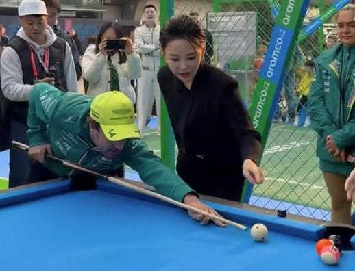 3月12日,阿斯顿马丁车手费尔南多-阿隆索与“九球天后”潘晓婷,以及两位男篮名宿杨鸣和刘炜在活动中进行了联动。潘晓婷上手向阿隆索教学了九球的打法,“头哥”的学习速度也非常快,第二次尝试就成功将球打进。随后阿隆索又和中国男篮名宿杨鸣和刘炜进行了篮球技术的切磋,头哥也小秀了一把背后传球。杨鸣在采访中表示:“这一次的参观我确实觉得非常震撼,以前只能在电视上看F1,...